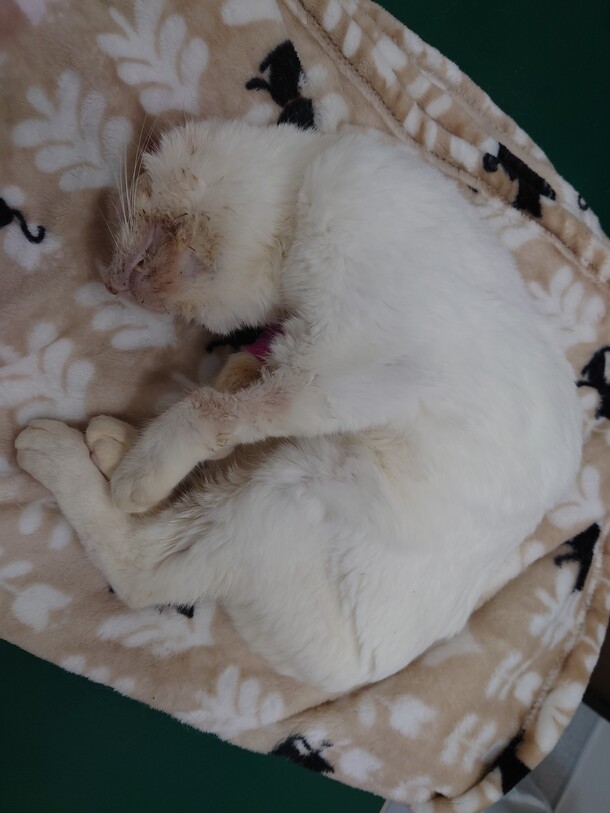 今日のユキの様子です。顎をマッサージし、いい子だねetcの言葉で褒めまくりコロンとして喉をグルグルいわせてました。大きな声で鳴き、とても嬉しかったです。これも一重に皆様の応援、ご支援、優しいお気持ちとお言葉のお陰です。