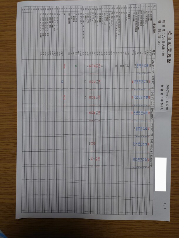 ▲1/18入院〜1/24退院までの検査結果履歴