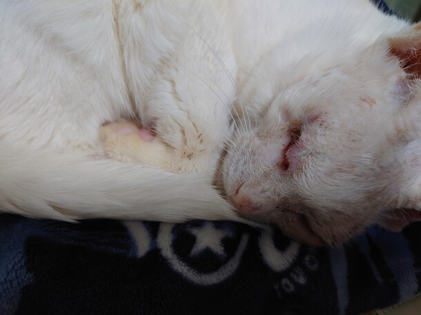 写真のユキはぐっすり眠ってまいす。1日1分1秒でもユキと長く居られる時間を作らせて下さい。よろしくお願い致します🙇