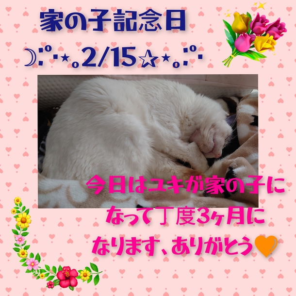 こんばんは。いつもユキを応援して下さる皆様に感謝致します。今日はユキが家の子になって丁度3ヶ月になりました。