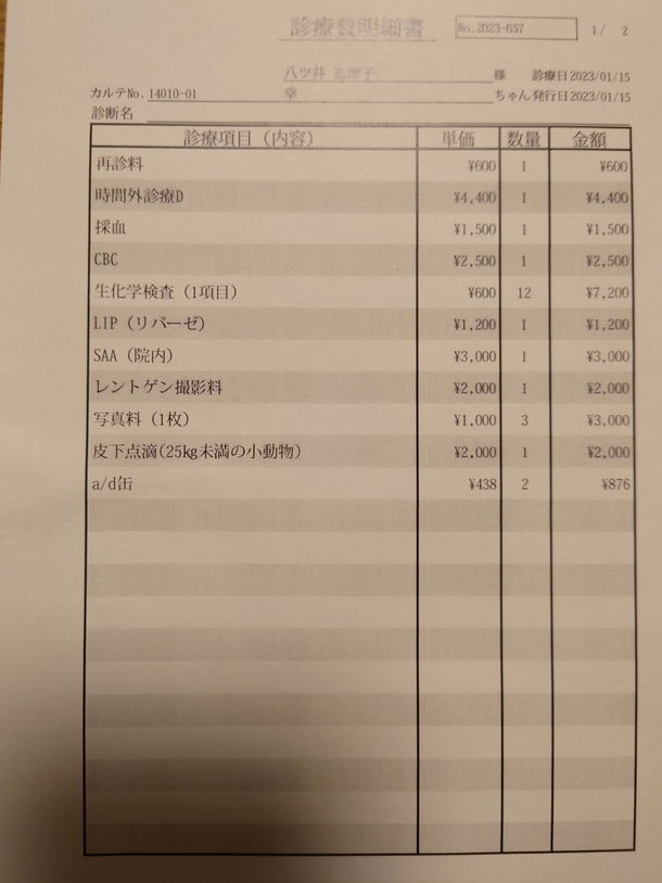 診療明細書 掲載漏れ (1/17診察分)1/2