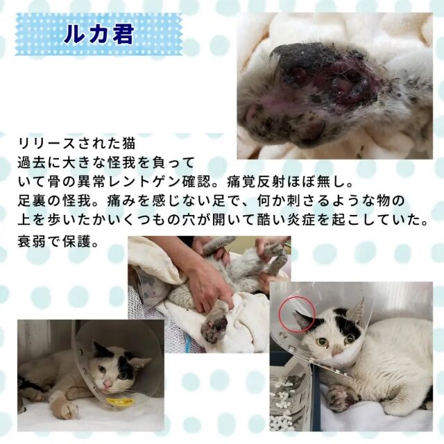 ルカくんは右前足に大怪我を負い、衰弱しているところをレスキューされました。