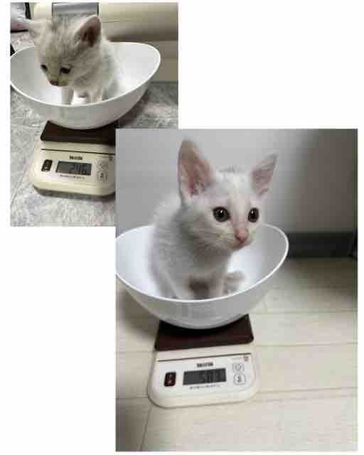 保護当時の小雪ちゃんの体重は、推定月齢の約半分「246g」でした。