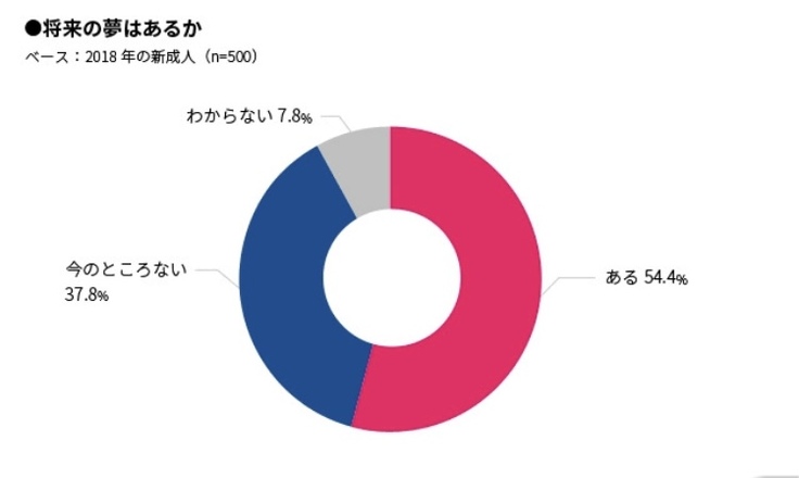 マクロミルが2018年に新成人に「夢」について調査したところ、約半数以上の新成人が「将来の夢を持っていない」ことが分かりました。