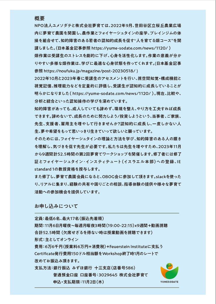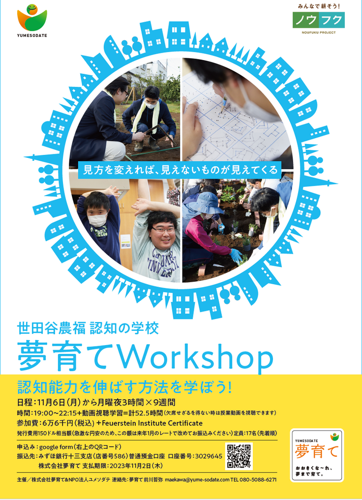 夢育てWorkshop、いよいよ来週11月6日(月)の夜からです!
