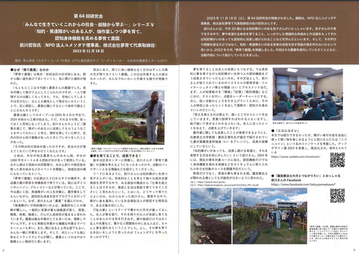 日本園芸療法士研修会NewsLetterGreenStepが夢育て農園を取りあげて下さいました!