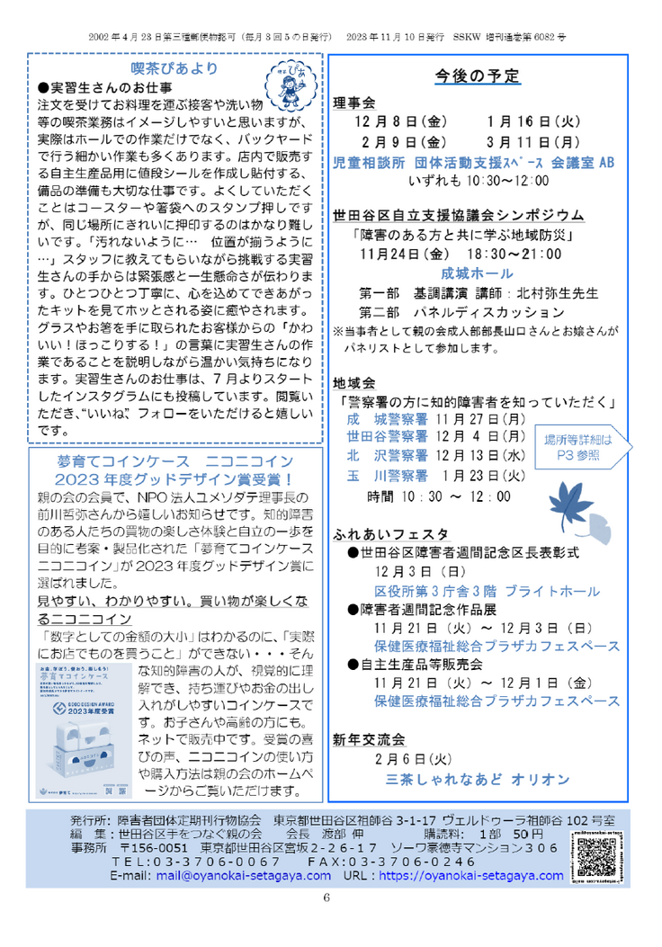 世田谷区手をつなぐ親の会が、親の会だよりとHPでニコニコインを取り上げて下さっています。