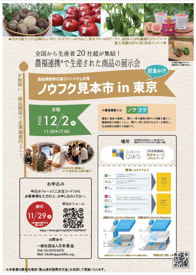 日本基金:「ノウフク見本市in東京」ノウフクの日制定記念イベントと併せて開催!12月2日 | イベント | ノウフクWEB