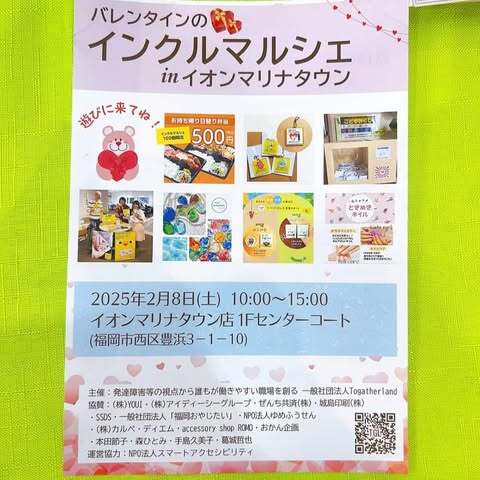 本日2月8日(土)福岡市のイオンマリナタウンで、together landさん主催のインクルーシブマルシェにおいて、ミニお買い物講座を開催するとともに、ニコニコインの販売をしました。
