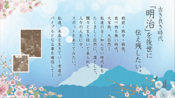 *今回の出版の際に、あなたのご家族や知人の方で明治生まれの方がいらっしゃいましたら、一緒に書籍に掲載させていただきます。
