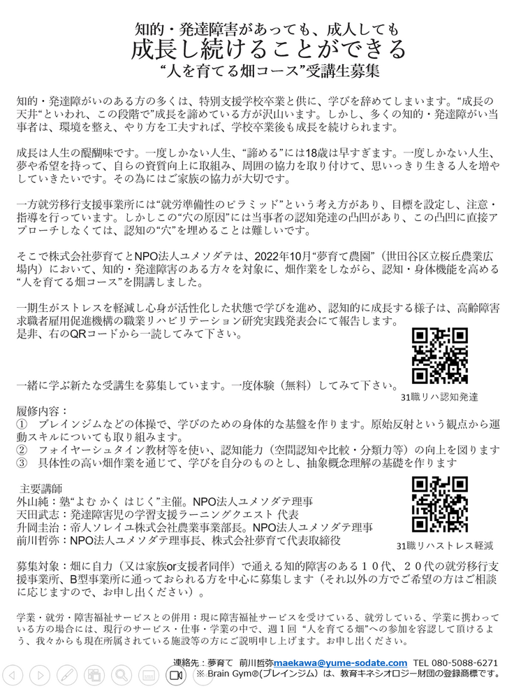 〇ユメソダテの想いをご説明いたします。(オンライン予定)