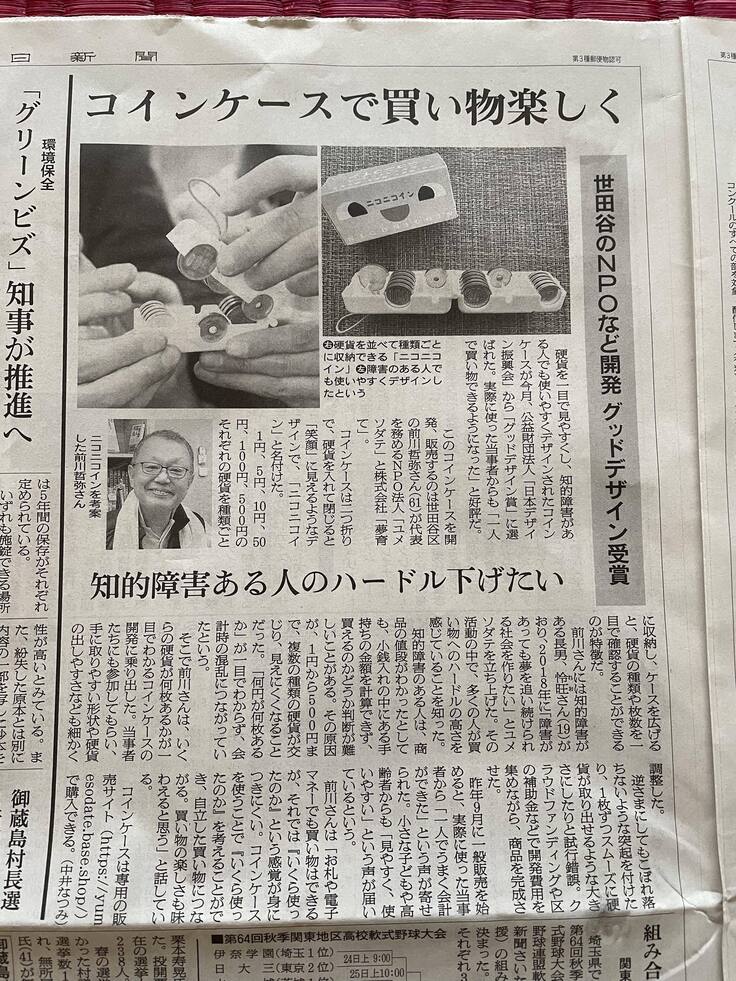 皆様のご支援を頂いて製作したニコニコインですが、5日にグッドデザイン賞2023を受賞し、また本日11日、朝日新聞朝刊の東京版17面で取り上げて下さいました。