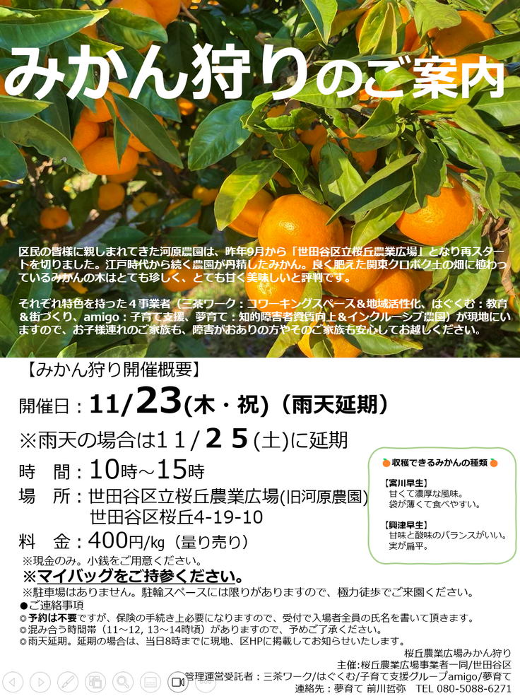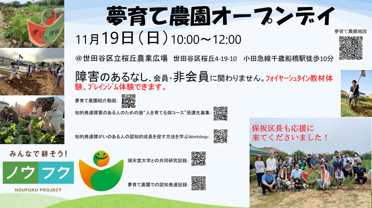 〇 夢育て農園(世田谷区桜丘4-19-10世田谷区立桜丘農業広場内)での作業やイベントへの参加。