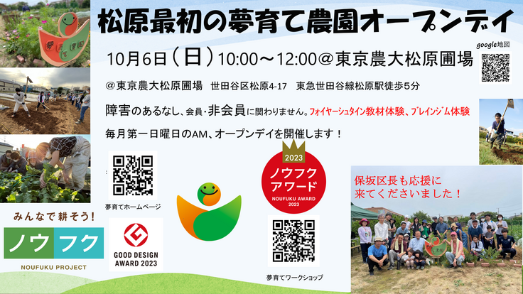 区立桜丘農業広場で活動してきた夢育て農園は、東急世田谷線松原駅近くに移転を致しました。移転後最初のオープンデイは、10月6日(日)です!