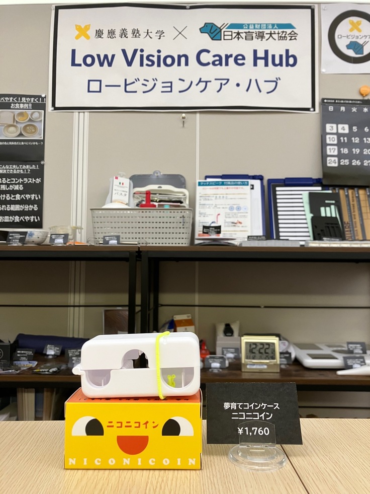 同病院の眼科と盲導犬協会が共同で運営しているLow Vision Care Hubという視覚障害のある人に便利なグッズなどを展示しているスペース(慶應義塾大学病院3号館3F)に、ニコニコインも展示頂くこととなりました。