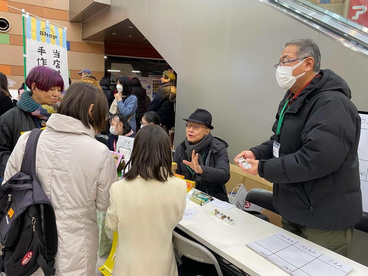 本日2月8日(土)福岡市のイオンマリナタウンで、together landさん主催のインクルーシブマルシェにおいて、ミニお買い物講座を開催するとともに、ニコニコインの販売をしました。