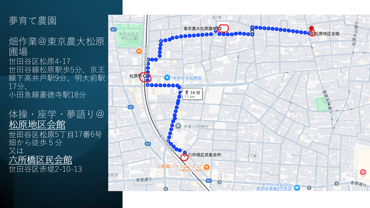 オープンデイは、以下の地図の東京農大松原圃場で開催予定です。
