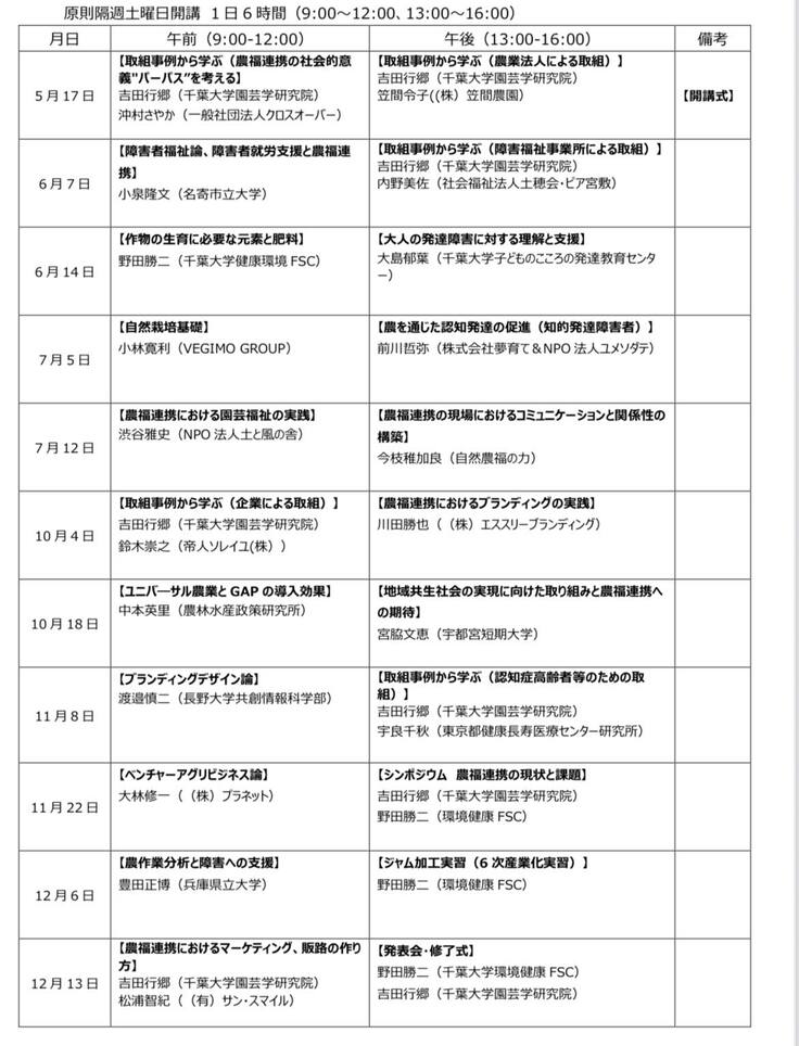 千葉大学柏の葉キャンパスで開講される多様な農福連携に貢献できる人材育成プログラムで今年も半日授業を持たせて頂きます。(7月5日PM予定)