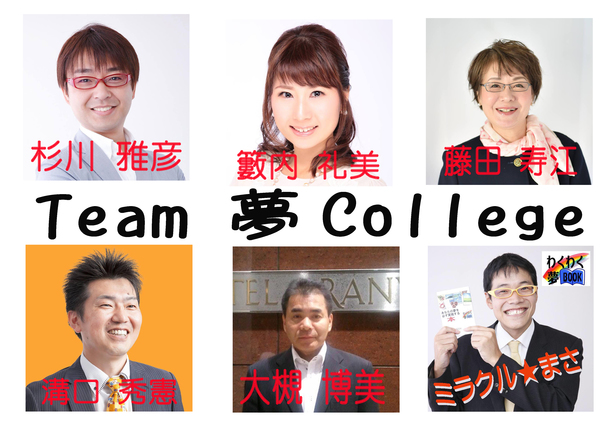 はじめまして、Team夢カレッジのミラクル★まさです。このTeam夢カレッジは、「すべての人が夢を持って生き生きと活動できる世界」を目指し、各々、セミナー活動をしております。