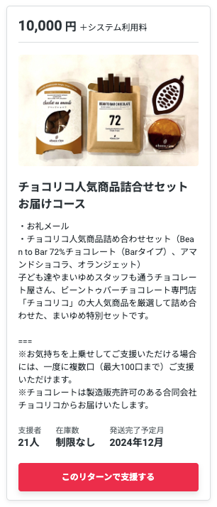 今回のリターンにはそんな美味しいチョコレートを