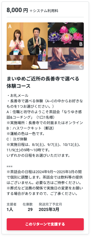 今回クラウドファンディングの返礼品に