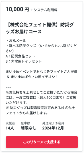以上はリターンにご協力いただいている、まいゆめ縁のみなさんでした★