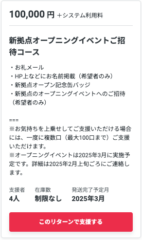 ※お気持ちを上乗せしてご支援いただける場合には、一度に複数口(最大100口まで)ご支援いただけます。