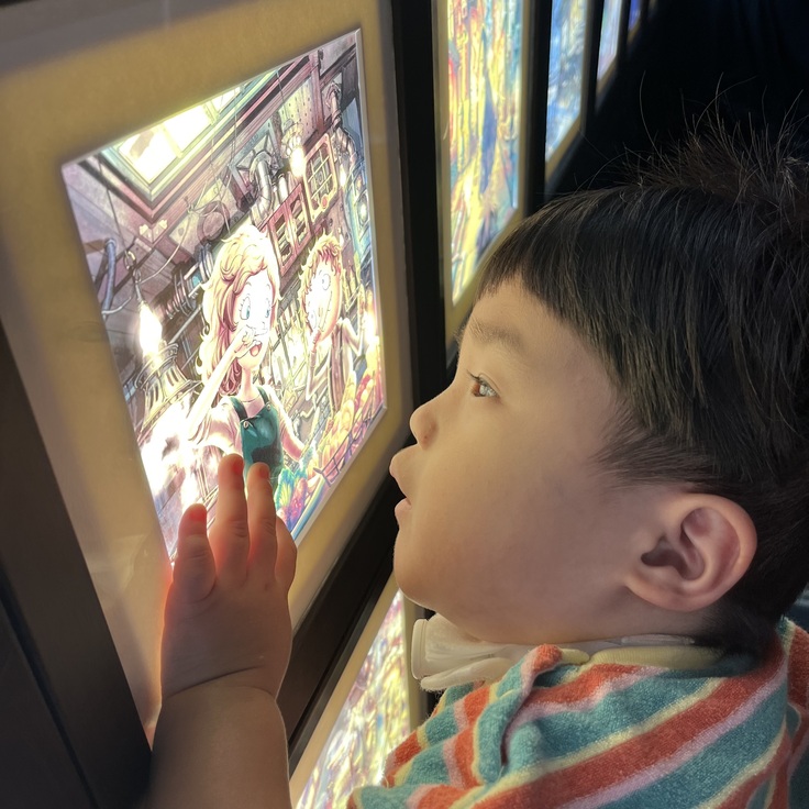 パネルに吸い込まれそうな勢いで見入っている子お友達