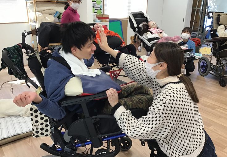 主な仕事は、利用者さんの医療的ケアの実施、体調管理です。