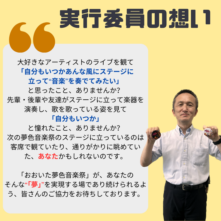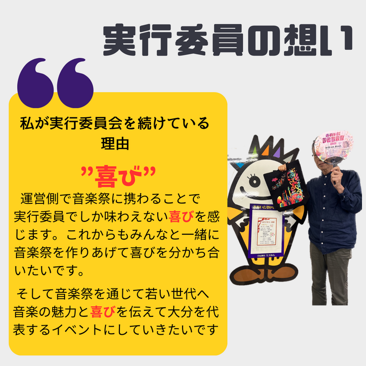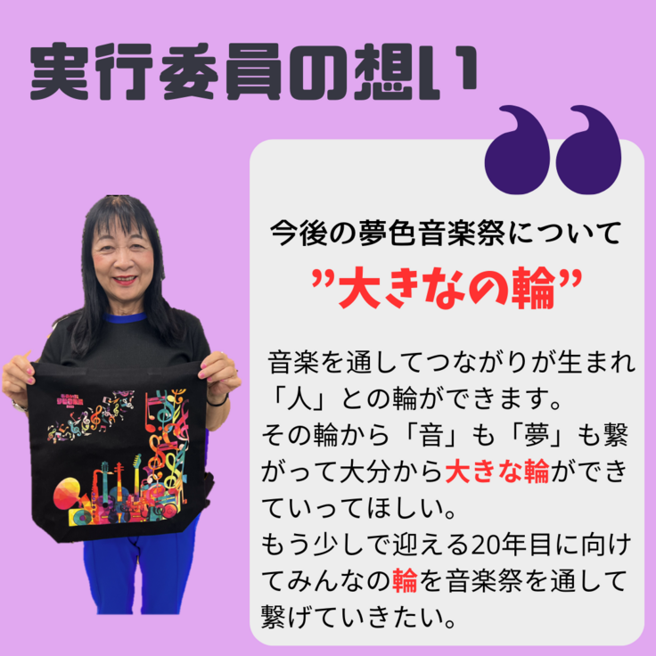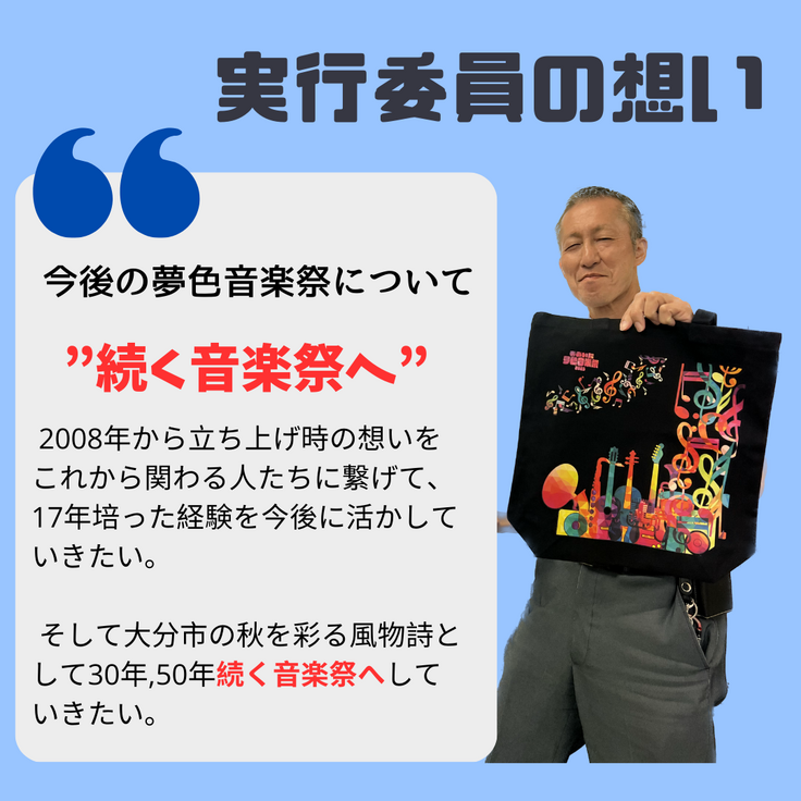 おおいた夢色音楽祭を今後20年30年続くイベントへしたいという