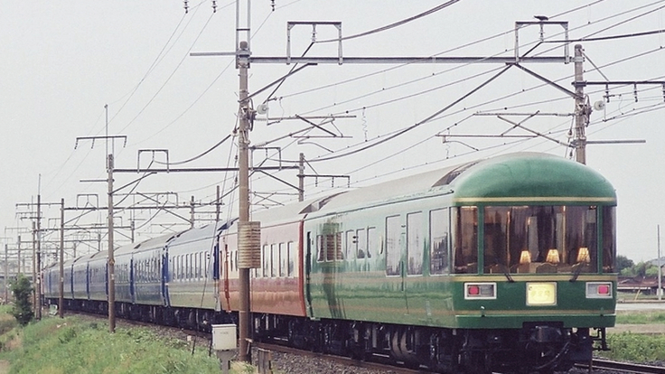「夢空間」は、豪華客車のパイオニアとして、東日本旅客鉄道株式会社発足後、唯一完全新製された24系客車で1号車の食堂車「ダイニングカー」、2号車のラウンジカー「クリスタルラウンジ・スプレモ」、3号車の寝台車「デラックススリーパー」の3両1組で構成され、それぞれ緑、赤、青を基調とした鮮やかな外観をしております。未来の新たな寝台特急のあり方を目指して平成元年(1989年)3月に登場した豪華客車です。1両1両が異なる製造所・有名百貨店によってデザインされ、そのラグジュアリーで特別な姿は今なお多くの鉄道ファンの記憶に残っています。平成元年に桜木町駅前にて、はじめて公開・展示され、その後、一般営業運転を開始、予約が困難なほどの人気を誇りましたが、平成20年(2008年)に老朽化を理由に営業運転を終了、廃車となり、1号車と2号車はららぽーと新三郷の敷地内に設置され、3号車は都内のレストランに設置されています。