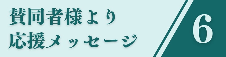 ▽ご支援のお手続き時に「応援コメント」としていただいたメッセージは、本プロジェクトのPRのために利用させていただく場合がございます。あらかじめご了承ください。