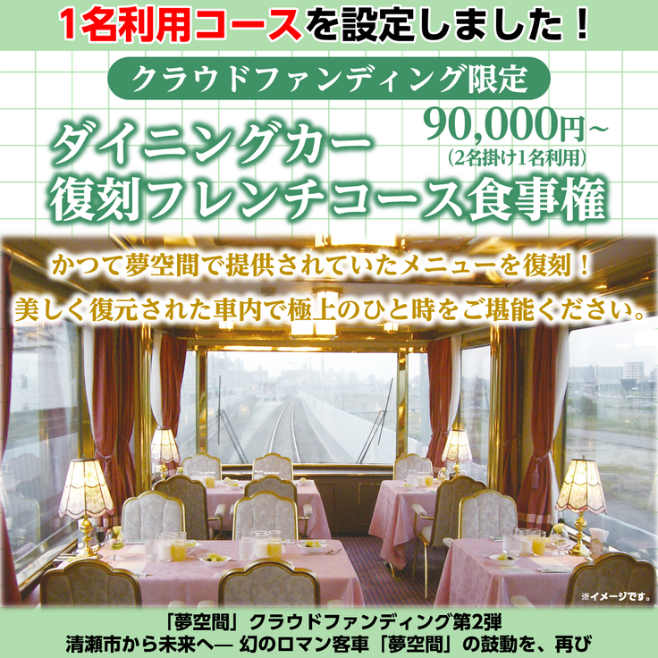 寄付控除対象外|【特別体験で応援】クラファン限定ダイニングカーフレンチコース食事権テーブル1名分(令和8年4月26日夜)