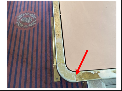 テーブルのメッキ部分について、剥げている箇所があるため、やり直します。