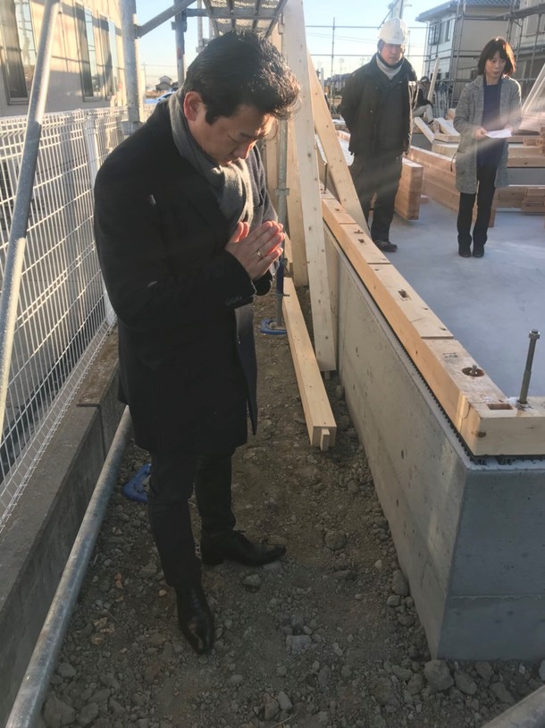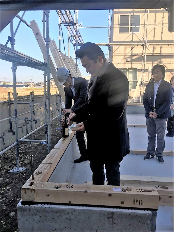 良く晴れた青空のもと、棟上げまでの完成に感謝し、建物完成までの安全を祈願いたしました。