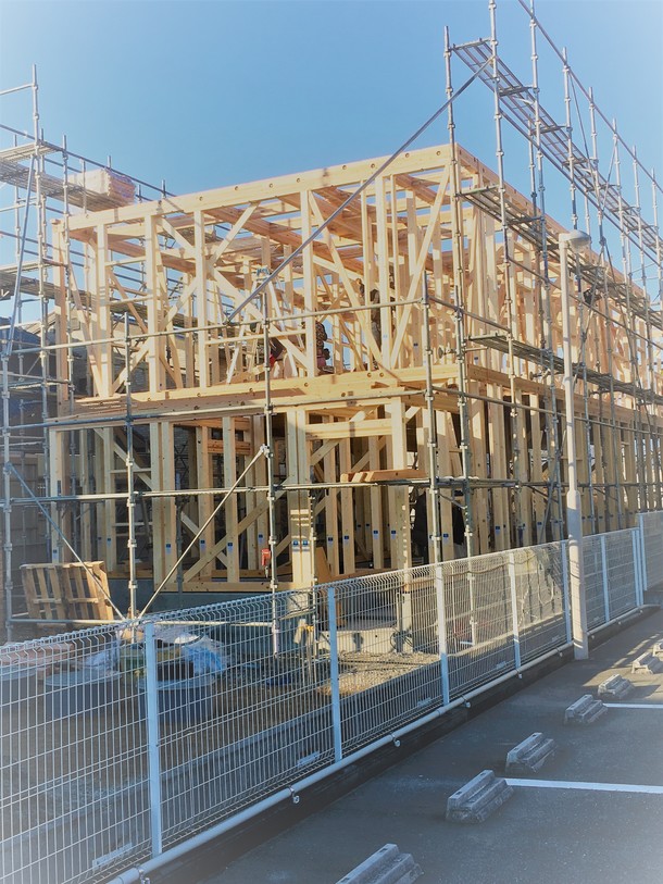 上棟式終了後は、あっという間に柱を立てる作業が進められていきます。