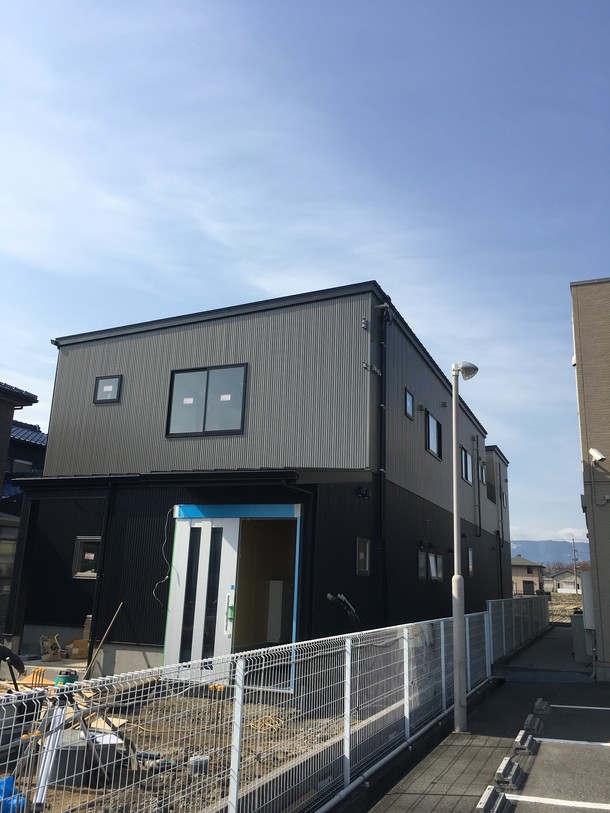 外壁は、1階はブラック、2階はシャンパンゴールドの2色を使用しています。