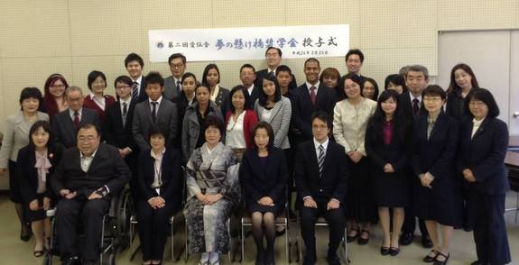 愛伝舎では、2013年から三重県の企業経営者や篤志家の方の寄付金と三重県とブラジルをつなぐMIEBRASプロジェクトで得た事業収益を三重県在住の外国につながる高校生への奨学金に充ててきました。これは大学や専門学校進学の際の入学支援となるもので、金額は1人10万円。決して十分な額とは言えませんが、新生活を応援するための奨学金です。2013年は2名、2014年は5名の高校生をサポートすることができました。奨学生の国籍は、ブラジル、ペルー、フィリピン、インドネシアと様々です。