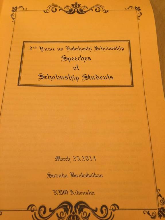 しかし、2015年に5名へ渡すための奨学金と、授与式で彼らが発表しているスピーチ原稿を文集にするための費用など15万円が足りません。ご支援お願いできませんでしょうか。
