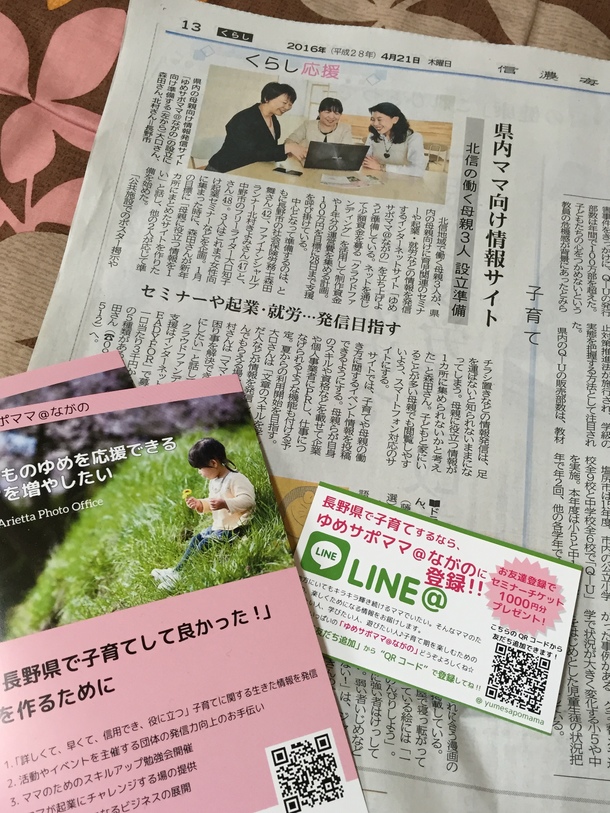 本日(4月21日)付の信濃毎日新聞13面に、ゆめサポのことを掲載していただきました!