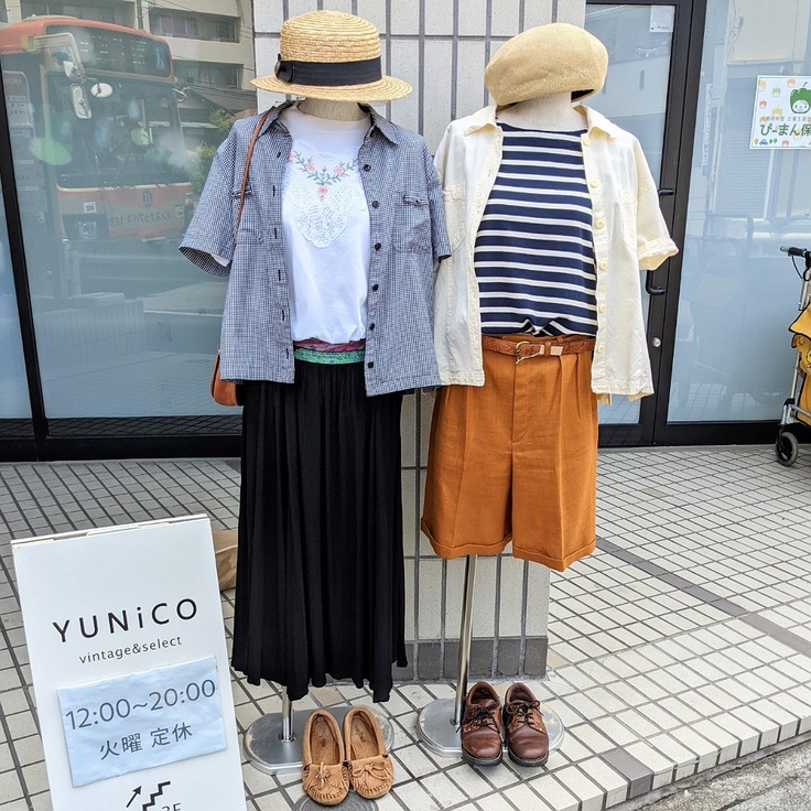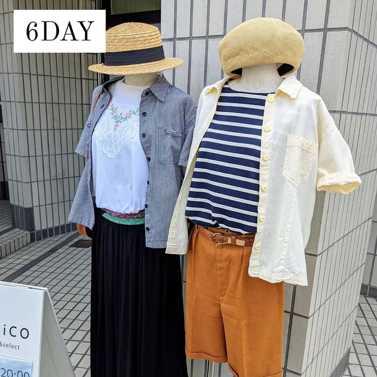 ボーダーTシャツ×半袖シャツ×ハーフパンツ