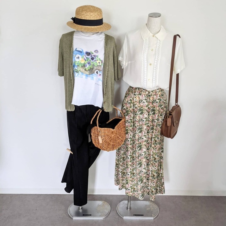 白ブラウス×小花柄スカート