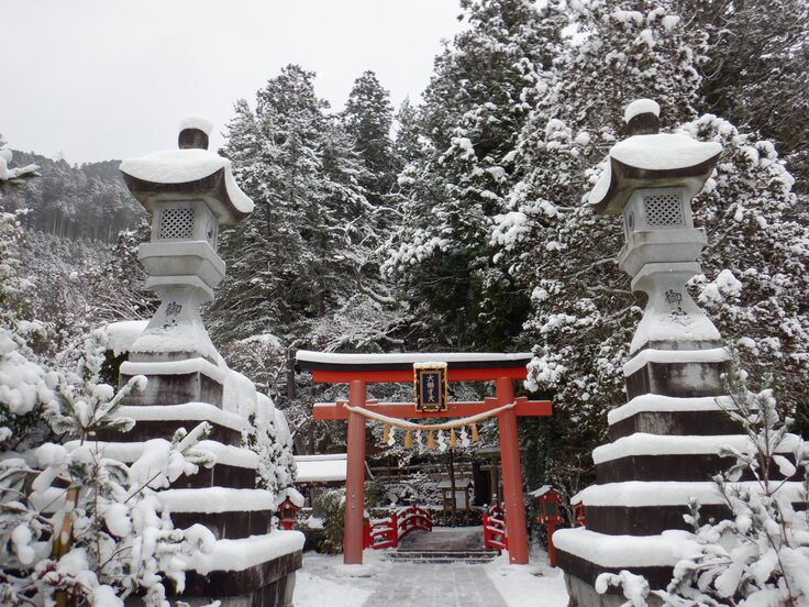 長い歴史があるこの神社では、神仏習合が現存し、3日の節分祭では神職が行者となり護摩焚き神事も行われます。しかし、この地の歴史の長さを感じるのは、特にこの節分祭の前日に行われる「鬼の宿神事」であります。 これは、天河社社家は役行者と供に祀られている前鬼、後鬼の子孫と言い伝えられているため、節分(2月3日)の前の晩に、『鬼の宿』として、鬼(神)を迎える、という神事があります。