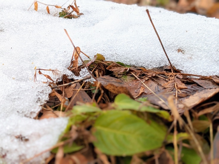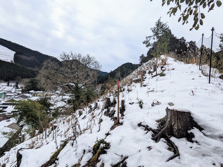 雪に埋もれてしまうほどまだ高さが低い苗木もありますが、雪や寒さで完全に倒れてしまった苗木はなさそうです。