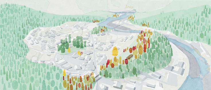 幾度となく山を登っては、どのように建築をしていくか、場所や大きさなどを話し合い。