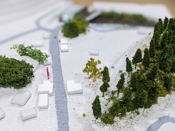 上図の写真は、建築家の方が作成していただいた船岡の杜のジオラマです。