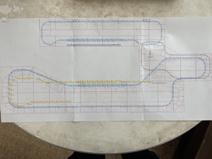 第1期工事として、長い方のレイアウトを全面張替えし、線路を仮配置してとりあえず走らせられる状態にします。