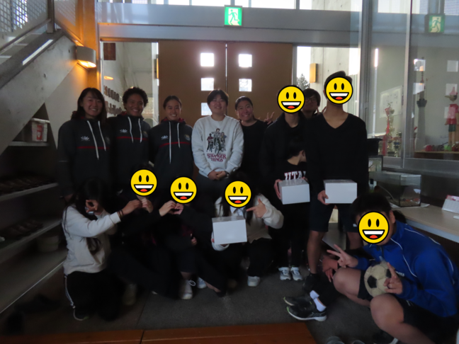長門ブルーエンジェルスの選手の皆さんが子どもたちにクリスマスケーキを持って来られました。ケーキを見て子どもたちは目を輝かせていました。クリスマスシーズンには他にも多くの方から素敵なプレゼントをいただいております。