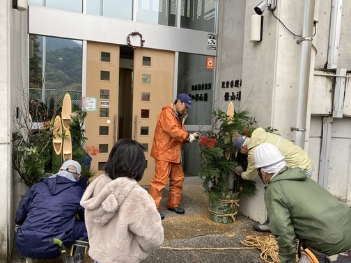 毎年、竹林ボランティアの方に立派な門松を作っていただいています。今年もよいお正月が迎えられそうです。