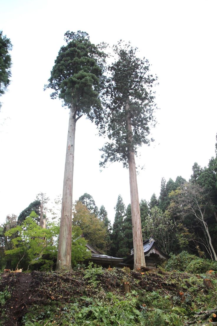 境内東側の樹木整理をしました。周辺の樹木が整理され、東側のご神木の全容が姿を現しました。高さは30m以上あると思います。今まで見たことがない神社とご神木のお姿です。来週以降西側の樹木整理作業に入ります。